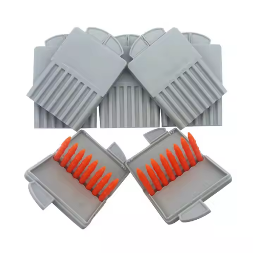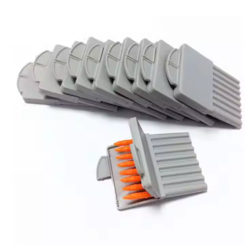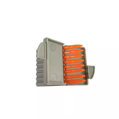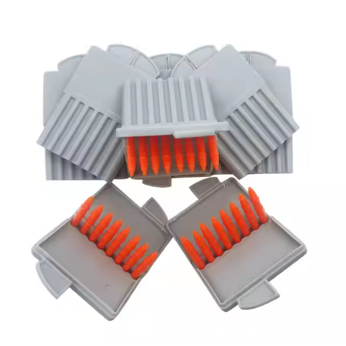 This wax guard comes in an orange and grey color combination, with 8 pieces per pack. It is made from PP plastic, weighs just 7g per pack, and is designed for use with Phonak and Starkey CIC, ITC, and ITE hearing Aids. The product supports private labeling, color customization, and is produced without a private mold.