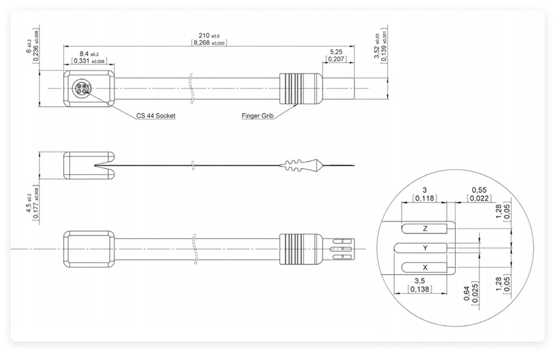 Note: Standard measurement tolerance on the drawings is ±0.05 mm / [0.002”] and ±2°. Any tolerances differing from this value will be indicated on the drawings.